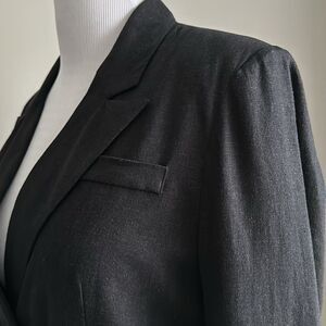Halston Double-breasted Black Linen Blend Blazer Size M