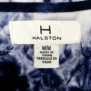 Halston Dress Women's Medium Maxi Ivory Blue Tie Dye Stretch Knit Sleeveless Tank Beach Resort