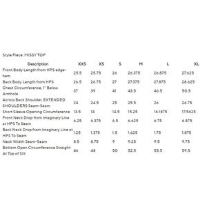 Length: missy length 25-1/2" to 27-5/8"; plus length 28-1/2" to 30-1/4"