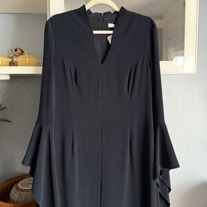 Halston Flounce Sleeve Crepe Gown Dress Maxi Navy Blue Size 14 Retail $425