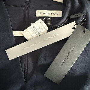 Halston Flounce Sleeve Crepe Gown Dress Maxi Navy Blue Retail $425