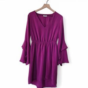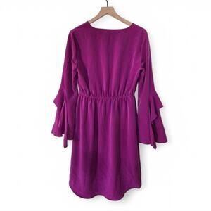 Halston Fuchsia Bell Sleeve V-Neck Dress Size Medium