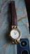 Elegant gold wristwatch with a brown leather strap. Perfect for any occasion.