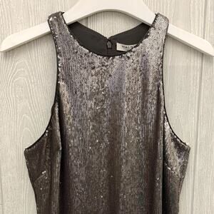 Halston Heritage Antique Silver Sequin Tank Dress Medium NWT