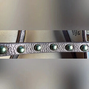 Halston Heritage | Arwen Mink Metallic Leather Studded Flats. Size: 8.5M