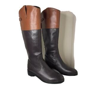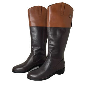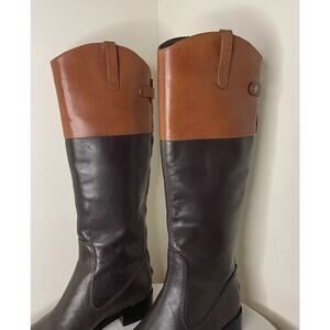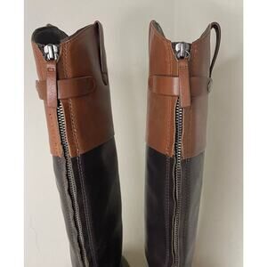 Halston Heritage Barbra Tall Leather Boots Black / Cognac Equestrian Riding Sz 7