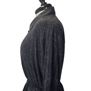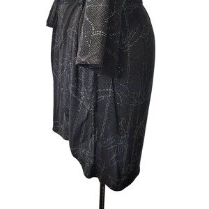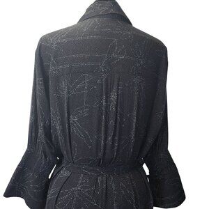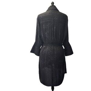 Halston Heritage Black & Silver Patterned Dress With Tie Waist & Flared Sleeves