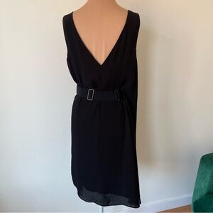 Halston Heritage Black Sleeveless Asymmetric Belted Cocktail Dress EUC Size 4