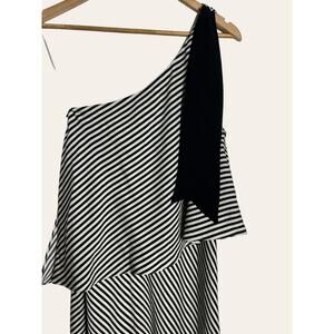 Halston Heritage Black & White Striped Asymmetrical One Shoulder Dress Size XS