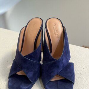 Halston Heritage Blue Suede Crisscross High Heel Vamps size 6.5