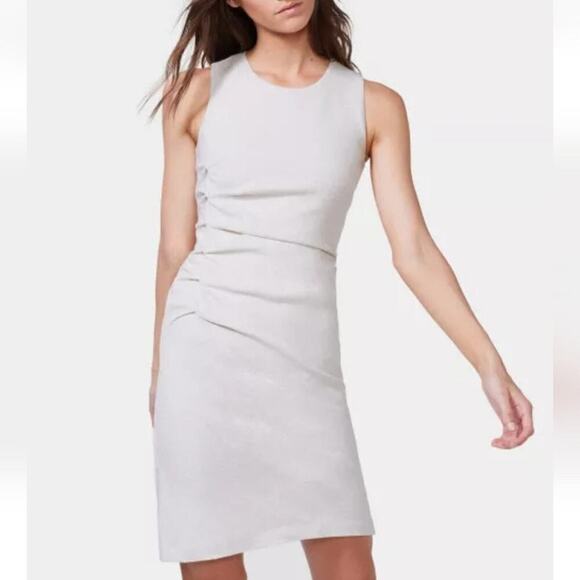 Halston Heritage Bone Tweed Ruched Side Sleeveless Sheath Dress Size L $429 NEW