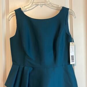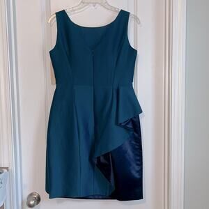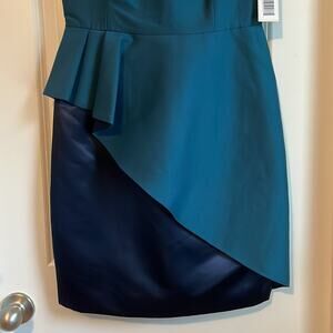 Halston Heritage Cadmium and Navy Cocktail Dress, size 4. NWT! Teal/cadmium and navy colors. Sleeveless, asymmetrical ruffle front and back, back zip, fully lined, princess seams. Gorgeous dress in new/never worn condition.