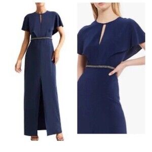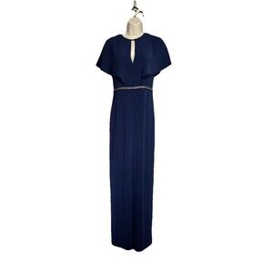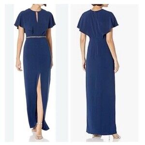 Halston Heritage Cape Sleeve Gown Dress Size 0 Blue Rhinestones *FLAWED