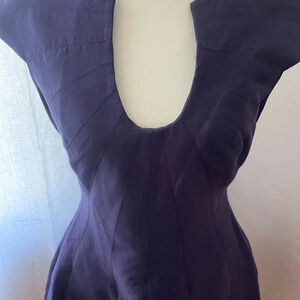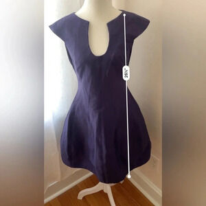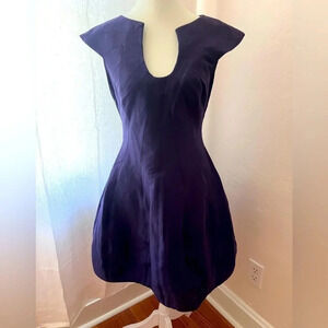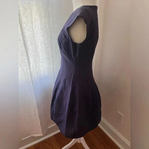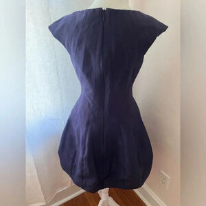 Halston Heritage Capped Sleeve Navy Blue Midi Dress Women Size Est Small