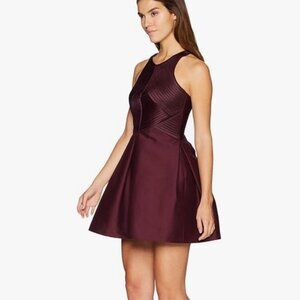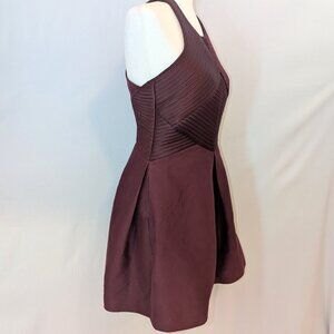Halston Heritage | Cotton & Silk Syrah Burgundy Stripe Seam Mini Dress | Size 8