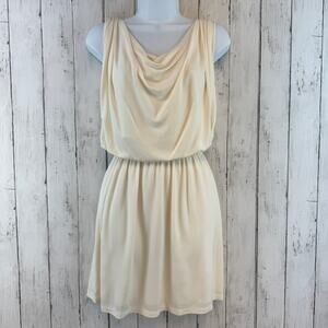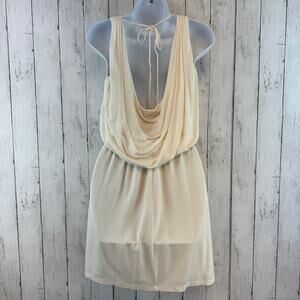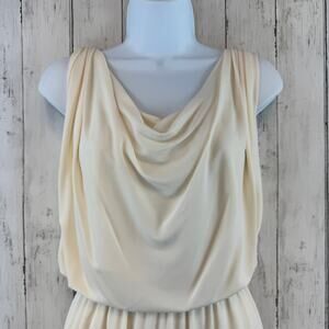 Halston Heritage Cream Knit Cowl Neck Sleeveless Blouson Mini Dress Size Small