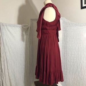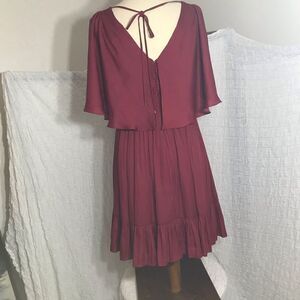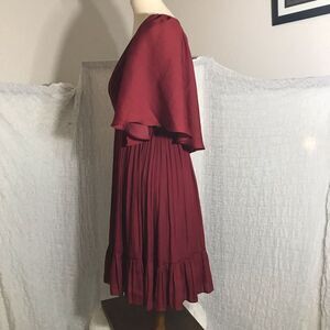 Currant Red, flowy short dress. V-neckline, Capelet and pleating details. It's new with tags. Please refer to pictures for best description and condition verification.