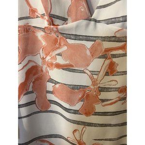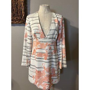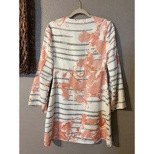 Halston Heritage Dress 6 Stretch Deep V Slit Sleeve Ivory Black Orange