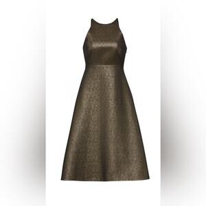 Halston Heritage Dress sz 6 Brown Halter Glitter Bow Back Midi Formal Fit Flare