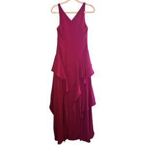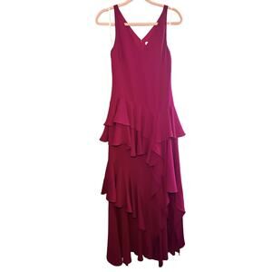Halston Heritage Drop Waist Tiered Ruffle Ball Gown Pink size 0