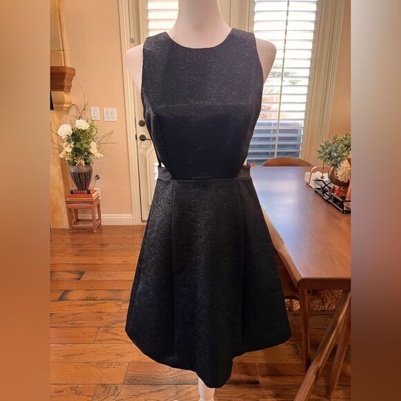 Halston Heritage Evening Fit Flare Black Formal Mini Dress Size 4 NEW Cut Out.