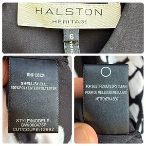 Elegant and eye-catching, this Halston Heritage Georgette Racerback Satin Maxi Dress features a bold white abstract floral motif with soft pink accents on a sleek black background. Designed with a high neckline, sleeveless cut, and a dramatic thigh-high front slit, this piece exudes modern sophistication. The racerback detail adds a chic edge, while the lightweight satin georgette fabric flows beautifully with movement. Hidden side zipper for a smooth fit. Gently worn with no flaws. Approximate measurements: 16" pit to pit, 16" across at waist, 21" across at hip, 59" shoulder to hem, 1"strap width