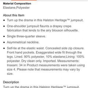 Halston Heritage Gia One Shoulder Wide Legs Jumpsuit Gala Cocktail Soiree