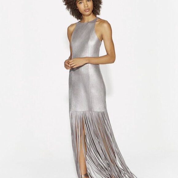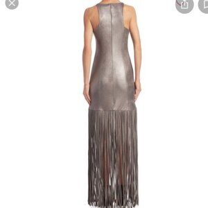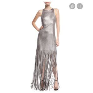 Halston Heritage Gunmetal Fringe Dress Gown, Grey/Silver/Metallic