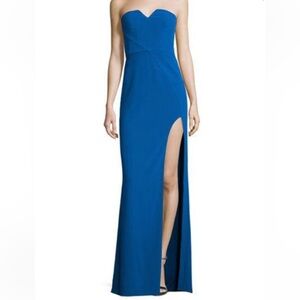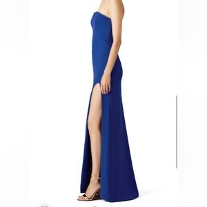 Halston Heritage Lapis Blue Strapless Maxi Gown Dress with Slit size 6 $375