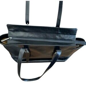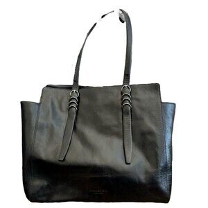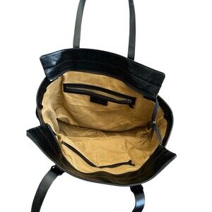 Halston Heritage Leather Tote Large Black Suede Lining Brushed Silver Hardware