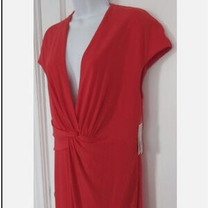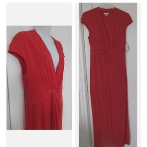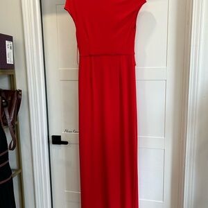 Halston Heritage Maxi Dress Waist Knot Red Cap Sleeves Formal Size S NWT