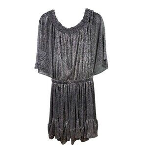 Halston Heritage Metallic Silver Off the Shoulder Pleated Mini Dress Ruffles XS