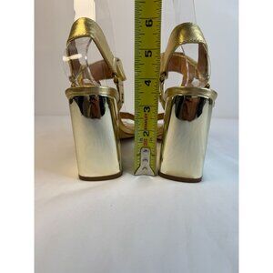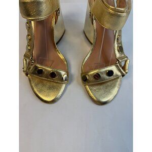 Halston Heritage Mica Sandal Womens Size 5.5M Gold & Bronze Studded Block Heel