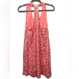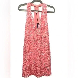 Halston Heritage V Neck Short Party Dress Women’s size 8 Sequin T Back Shimmy Halter Parfait Pink