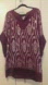 Perfect for the holidays!! Stunning & Rare this is a Gorgeous aubergine & metallic Tunic dress w/ satin trim, 3/4 bell sleeves / Kimono sleeve & silver detail in the pattern.