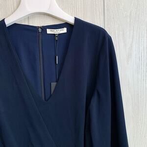 Halston Heritage Navy Blue V-Neck Wrap Dress Size 10 NWT