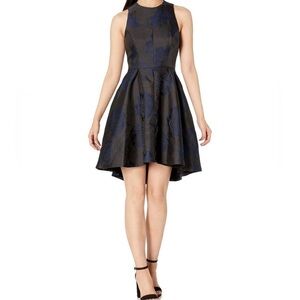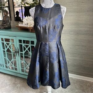 Halston Heritage Navy Floral Jacquard Fit & Flare Pleated Mini Dress Size 4