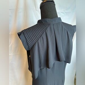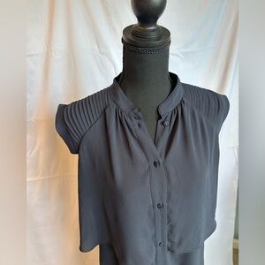Chic charcoal midi dress with cap sleeves. Button-down front adds elegance. Perfect for versatile styling.