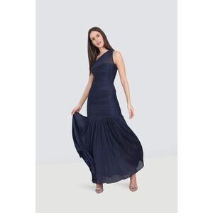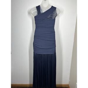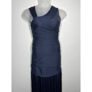 Halston Heritage Navy Pleated Dress Size Medium Mermaid Gown Formal