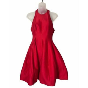 Halston Heritage Red Cotton & Silk Fit & Flare Holiday Dress 2