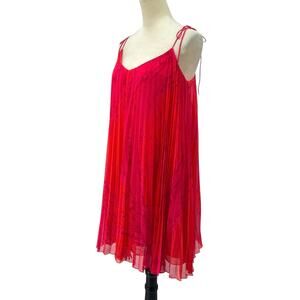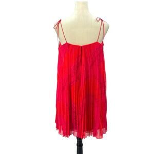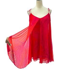 Halston Heritage Red Pink Print Accordion Pleated Flyaway A-line Mini Dress