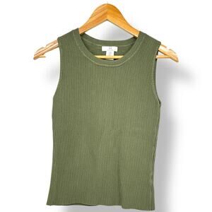 Halston Heritage Ribbed Tank Top Sleeveless Women's M Forrest Green Minimalist