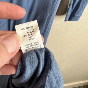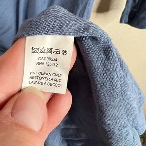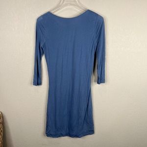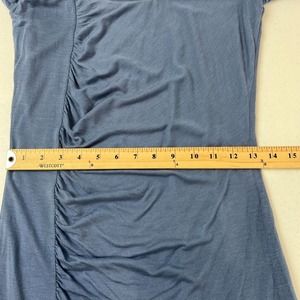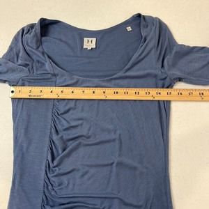 Halston Heritage Sheath Dress Sz 2 Blue Ruched 3/4 Sleeve Scoop Neck Silk Blend