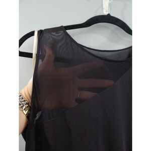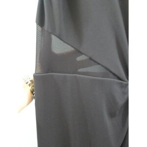Halston Heritage Sheer Panel High Neck Gown - Black 12. This item is new with tags/with defects. The tag was re-attached prior to the original purchase from store. there is a tiny nic in the mesh on the back neckline. See pic.