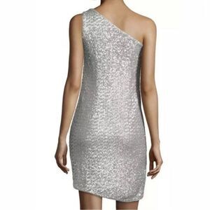 holiday dress, sequin cocktail dress, sparkly party dress, one shoulder mini, metallic tulip hem, New Year’s Eve outfit, wedding guest, date night, special occasion, Halston silver dress, glamorous night out, cruise, birthday dress, bachelorette, prom alternative, black tie optional, elegant yet sexy