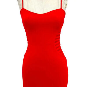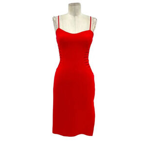 Halston Heritage Sleeveless Crepe Dress With Side Strips In Red Size 0