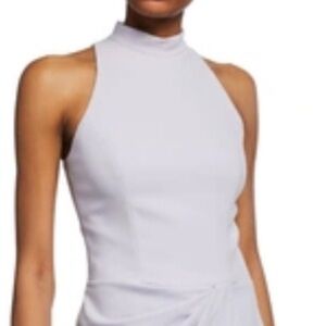 Halston Heritage Sleeveless Mock-neck Drape-front Mini Dress Lavender Ice Size 4