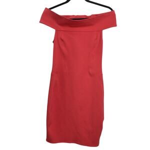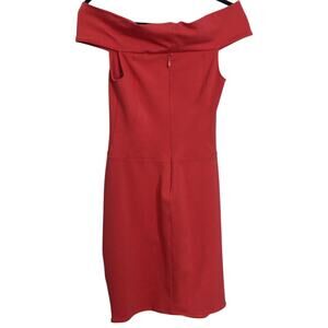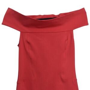 Halston Heritage Smooth Operator Sheath Size 2 Off the Shoulder Fitted Mini Dress Red Cocktail Bodycon Office Siren