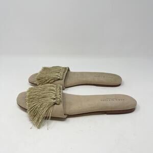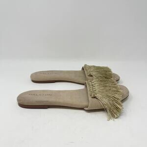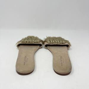 Halston Heritage Tan Fran Fringe Slide Sandals