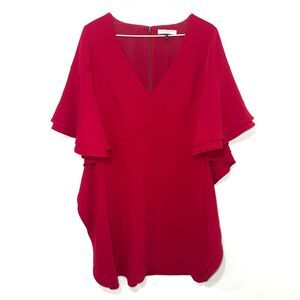 Halston Heritage V Neck Draped Sleeve Dress - Crimson 6. This item is pre-owned in excellent condition.